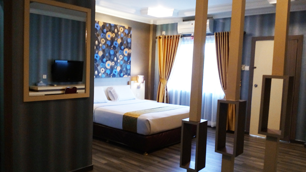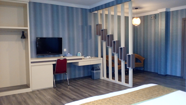 72,8 sqm which is designed in contemporary style, this light and airy room features with 1(one) queen bed or 2 single bed completed with air conditioned and individual thermostat, private balcony, floor with carpet, coffee & tea facility, LCD TV with 62 channels and broadband internet connection. The room is located on 3rd floor.